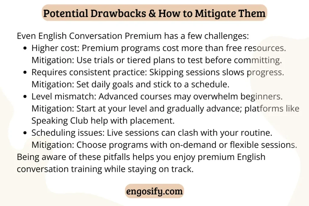 Some premium courses assume a certain English proficiency. If your level is below the course’s target, lessons might feel overwhelming, leading to frustration.